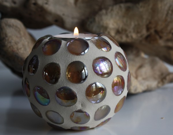 Bougeoir Beige pour bougie chauffe-plat de Nathalie SIAN, créatrice d’œuvres destinées à la décoration de la maison et du jardin, autour du thème de la SPHÈRE comme symbole de mouvement du monde.